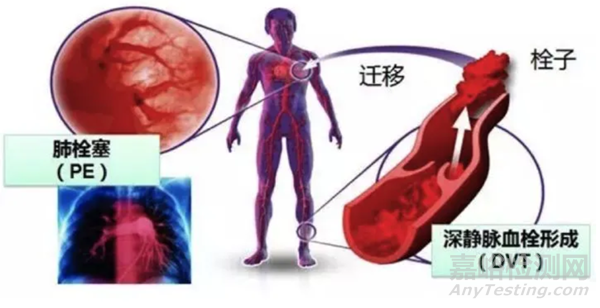 其中,靜脈血栓栓塞癥(Venous Thrombo Embolism,VTE)包括深靜脈血栓形成(Deep Vein Thrombosis ,DVT)和肺栓塞(Pulmonary Embolism ,PE),為同一疾病病程的兩個(gè)不同階段,兩者一起已成為僅次于冠狀動(dòng)脈疾病與腦血管疾病的第三大心血管疾病,在人群中具有較高的發(fā)病率。DVT是指血液在深靜脈內(nèi)不正常凝結(jié),常發(fā)于下肢。靜脈血栓一旦脫落,可隨血液進(jìn)入并堵塞肺動(dòng)脈,導(dǎo)致肺動(dòng)脈栓塞(PE),5%的DVT患者可因血栓脫落造成PE,肺栓塞是高死亡率疾病,這也是為什么靜脈血栓栓塞癥稱(chēng)之為沉默殺手的原因。
