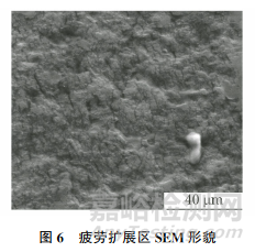 疲勞擴(kuò)展區(qū)SEM 形貌如圖6所示。由圖6可知:擴(kuò)展區(qū)存在疲勞輝紋及大致平行的二次裂紋,符合疲勞斷裂的微觀形貌特征。