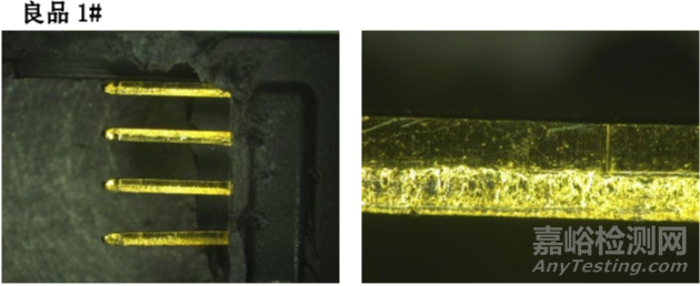 良品Pin腳鍍鎳層厚度在1μm左右,鍍金層厚度為116-127nm左右。