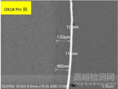 3、Pin腳鍍層厚度分析:切片+SEM確認鍍層厚度。