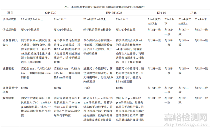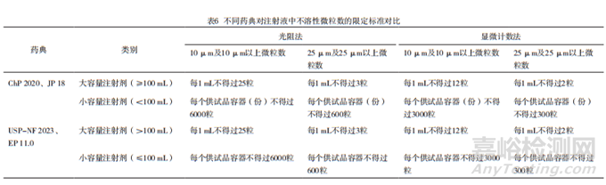 但是在ICH Q4B附錄3(R1)中,對于100 mL注射劑,歐盟和FDA均認(rèn)為美、日、歐三方藥典的判定標(biāo)準(zhǔn)均有同等效力。因此,中、美、日、歐在對注射液中不溶性微粒數(shù)的限定標(biāo)準(zhǔn)方面要求一致。