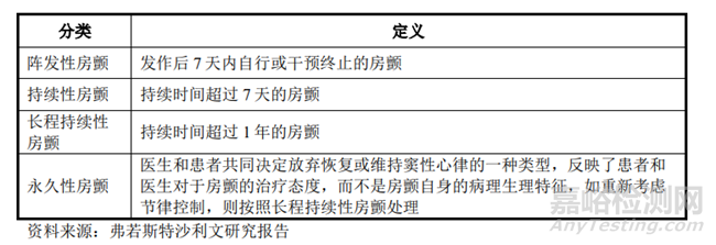 心房顫動(簡稱“房顫”)是臨床最常見的快速心律失常疾病之一,臨床癥狀是心房出現(xiàn)快速無序的顫動波,喪失規(guī)則有序的電活動并失去有效的收縮與舒張,導(dǎo)致泵血功能惡化或喪失,并引發(fā)心室出現(xiàn)極不規(guī)則的反應(yīng)。除此之外,房顫會增加患者腦卒中、心肌梗死等心血管疾病的發(fā)病風(fēng)險(xiǎn),同時也有可能導(dǎo)致患者出現(xiàn)認(rèn)知功能下降、癡呆、阿爾茨海默癥等。根據(jù)發(fā)生房顫的持續(xù)時間,房顫可分為陣發(fā)性房顫、持續(xù)性房顫、長程持續(xù)性房顫和永久性房顫,具體如下:
