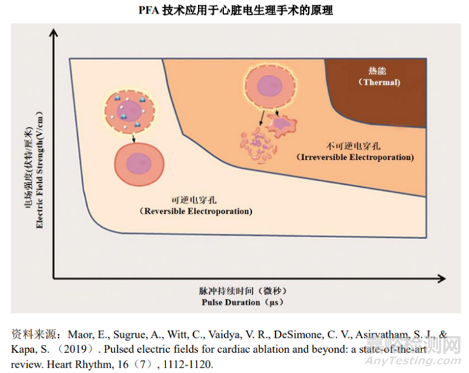 PFA是近幾年興起的房顫介入治療新技術(shù),相比于傳統(tǒng)冷熱消融技術(shù),PFA通過控制、釋放適當(dāng)強(qiáng)度的脈沖電場能量,有選擇性地對需要治療的病灶部位的心肌細(xì)胞產(chǎn)生不可逆的電穿孔損傷,從而達(dá)到“安全有效更高效的”的治療房顫的目的,被譽(yù)為是房顫治療新的技術(shù)變革。