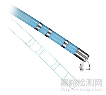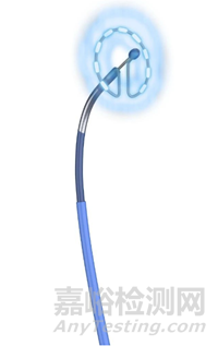 該消融導(dǎo)管在環(huán)形頭端上帶有10個電極,且環(huán)形頭端尺寸可調(diào)(從25到35mm)。同時導(dǎo)管可以雙向調(diào)彎,一側(cè)調(diào)彎180°,另一側(cè)調(diào)彎90°。
