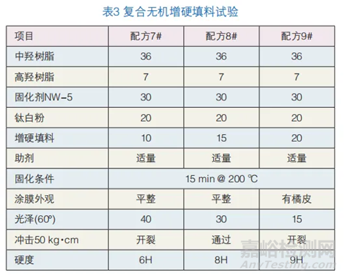 2.復合無機增硬填料能有效地提高涂膜硬度,但加量不宜太大,否則會影響涂膜表面流平。