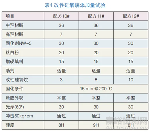 從表4可知添加用聚酯改性的硅氧烷助劑不會影響涂膜的外觀、光澤,但會影響涂膜的硬度。添加量直接影響涂膜硬度,配方10#加約3‰(質量千分比)量小,涂膜滑爽性不夠,不能提高涂膜硬度;配方11#加約8‰(質量千分比)大
