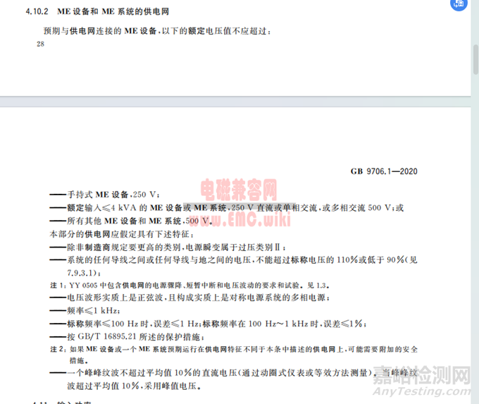 GB 9706.1-2020 \ IEC 60601-1標準規(guī)定設(shè)備應(yīng)在交流(AC)電壓220V±22V的范圍內(nèi)正常工作。這意味著設(shè)備的電源設(shè)計應(yīng)能夠適應(yīng)從198V(220V - 22V)到242V(220V + 22V)的電壓波動。
