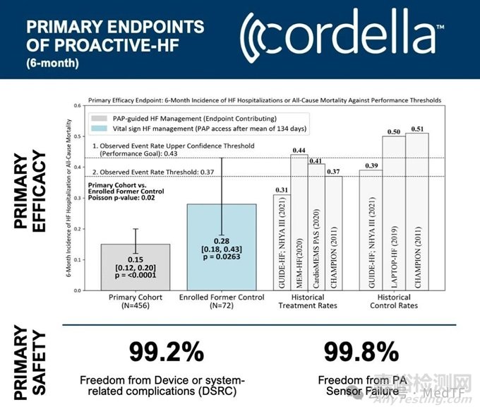 PROACTIVE-HF是一項(xiàng)多中心前瞻性臨床研究,在歐美75個(gè)中心納入528名NYHA III心衰患者。試驗(yàn)顯示患者依從性(平均每周提交6次Cordella)和臨床醫(yī)生參與率(平均每周審查2次)很高。6個(gè)月的單臂結(jié)果符合主要安全性和療效終點(diǎn)以及幾個(gè)具有臨床意義的次要療效終點(diǎn)。