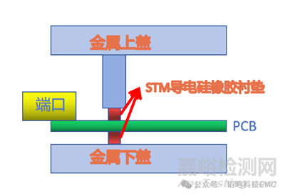在一些機(jī)器中會(huì)分別在端口部分,或者電源部分內(nèi)置一部分的金屬腔體。在上蓋合并的同時(shí),通過擠壓接觸STM導(dǎo)電硅橡膠襯墊進(jìn)行多點(diǎn)接地。那如果沒有金屬腔體的設(shè)計(jì)配合是否還能針對(duì)模塊進(jìn)行屏蔽呢?