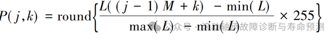 將一維數(shù)據(jù)轉(zhuǎn)化成矩陣后,再按下列公式將其轉(zhuǎn) 化成為灰度,進(jìn)而成為灰度圖像,便可用常用的 CNN 進(jìn)行分類識(shí)別了。