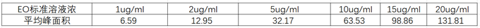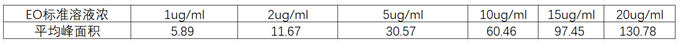 表2,EO濃度與平均峰面積數(shù)據(jù)