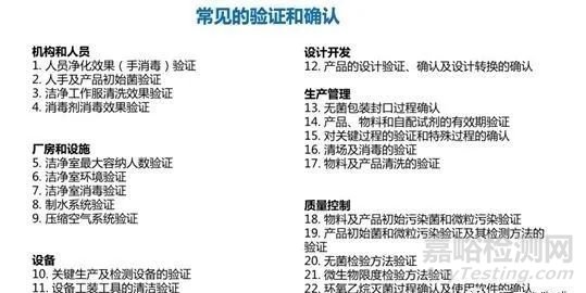 常見(jiàn)的驗(yàn)證和確認(rèn)項(xiàng)目