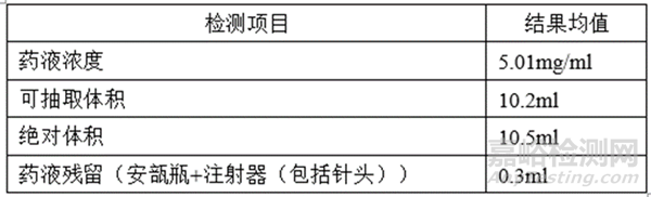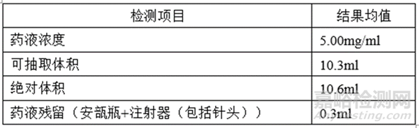 以參比制劑規(guī)格為10ml:50mg為例,依據(jù)《中國藥典》(2020年版四部0102注射劑)項下裝量方法對參比制劑的裝量進行研究,檢測方法如下所示。