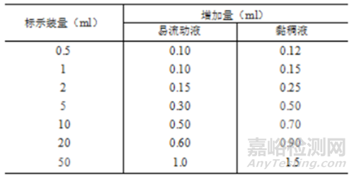 供試品標示裝量不大于2ml者,取供試品5支(瓶);2ml以上至50ml者,取供試品3支(瓶)。開啟時注意避免損失,將內(nèi)容物分別用相應(yīng)體積的干燥注射器及注射針頭抽盡,然后緩慢連續(xù)地注入經(jīng)標化的量入式量筒內(nèi)(量筒的大小應(yīng)使待測體積至少占其額定體積的40%,不排盡針頭中的液體),在室溫下檢視。每支(瓶)的裝量均不得少于其標示裝量。