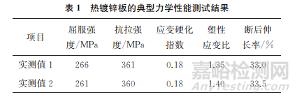 (1)將熱鍍鋅板的厚度由 0.3mm減薄至0.27mm,在材料不變、沖壓工藝不變的前提下,熱鍍鋅板的成形極限由0.23降低至0.20,沖壓極限應(yīng)變由0.204上升至0.209,直接減薄無法滿足該零件沖壓成形的要求,造成零件沖壓開裂。在保持加工硬化指數(shù)不變或增大的情況下,材料的屈服強(qiáng)度低于255MPa,可以滿足該零件的沖壓成形要求。