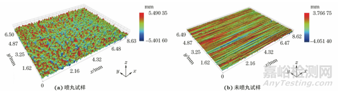 圖2 噴丸試樣和未噴丸試樣表面的三維形貌