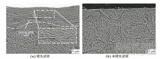 圖3 噴丸試樣和未噴丸試樣截面SEM 形貌