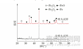 圖 6 未噴丸試樣和噴丸試樣在 500℃下磨損后表面的 XRD譜