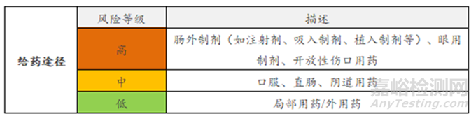因此,本文按照給藥途徑將藥用輔料的風險等級劃分為高風險、中風險和低風險3類: