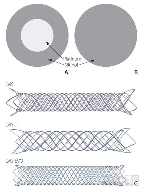 LVIS EVO是MicroVention彈簧圈輔助顱內(nèi)支架LVIS系列最新一代產(chǎn)品。其相比于前兩代產(chǎn)品LVIS和LVIS Jr,其采用全新的工藝---DFT (Drawn Filled Tube) ,即鎳鈦合金-鉑復(fù)合材料(鎳鈦管內(nèi)置鉑金絲),實(shí)現(xiàn)整根絲在X射線顯影能力。