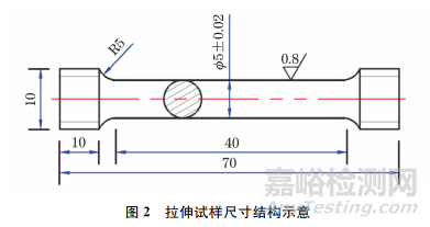 試驗(yàn)所用材料為10CrNi3MoV 低合金結(jié)構(gòu)鋼,其組織為回火索氏體 (見 圖1)。依據(jù)GB/T 228.1—2021《金屬材料 拉伸試驗(yàn) 第1部分:室溫試驗(yàn)方法》對拉伸試樣進(jìn)行加工,拉伸試樣的尺寸結(jié)構(gòu)如圖2所示。