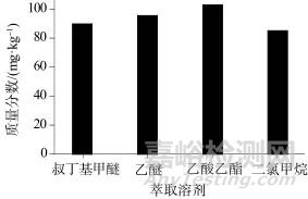 圖3 不同萃取溶劑時3,3'-二甲氧基聯(lián)苯胺的質(zhì)量分?jǐn)?shù)