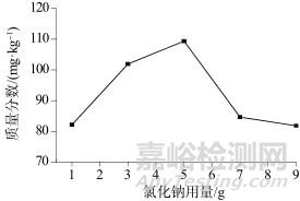 圖4 不同氯化鈉用量時3,3'-二甲氧基聯(lián)苯胺的質(zhì)量分?jǐn)?shù)
