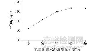 Fig. 5 Mass fraction of 3,3'-dimethoxybenzidine at different mass fractions of sodium hydroxide