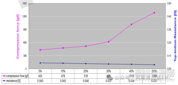 圖10:貼片導(dǎo)電泡棉壓縮比與表阻抗之間的關(guān)系曲線(二)