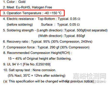 圖11:貼片導(dǎo)電泡棉規(guī)格書給出的溫度應(yīng)用范圍