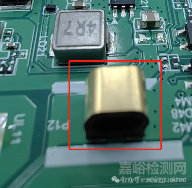 主控芯片散熱片與芯片之間的容性耦合,會(huì)將芯片內(nèi)部的高頻噪聲耦合到散熱片上,散熱片本身就成為輻射天線,將高頻噪聲向外發(fā)射。散熱片接地是降低其電場(chǎng)輻射的有效手段,通過貼片導(dǎo)電泡多點(diǎn)棉接地,是降低散熱片電場(chǎng)噪聲的重要措施之一。