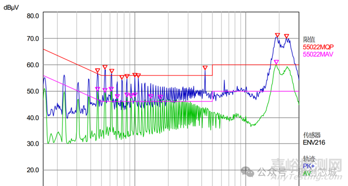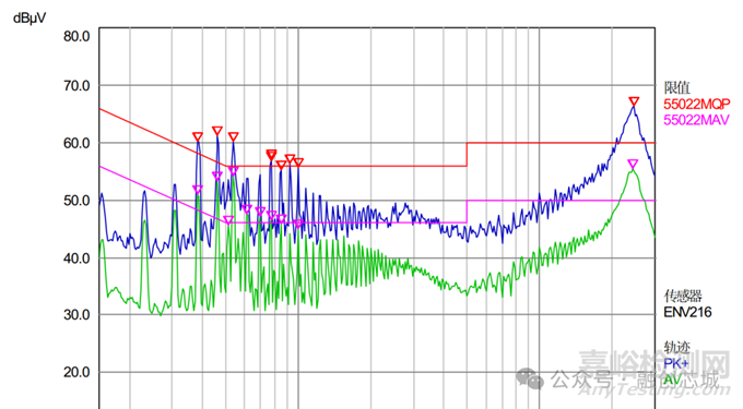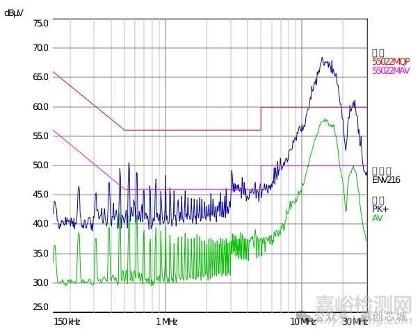 因此這個Y電容的位置可謂是相當?shù)年P鍵,也因此我去掉這個Y電容后,在23M附近居然會超標了15個dB,當我找到這個突破點后,我把這里的Y電容用成了2.2nF的。電容加大一倍,對濾波器的衰減更加有效果,在更改Y電容和確定刪減位置后,再次掃描的傳導,發(fā)現(xiàn)在10M~30MHZ處之前的超標的點,現(xiàn)在已經(jīng)得到控制。這個案例也說明在高頻段,然任何一個Y電容對結果的影響都是十分的關鍵。