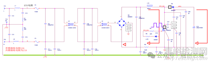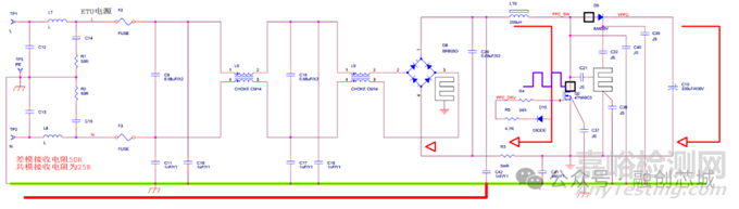 為了簡單有效果的排除傳導干擾源,所以我是先關閉了正激部分的電路,只讓輔助電源的反激和PFC在工作。目的是先解決PFC和反激的問題,然后解決正激的問題,這樣能更加清楚的定位故障點。比如:我發(fā)現(xiàn)在正激關閉時20MHZ處的超標,其他地方?jīng)]有明顯超標。而當我把正激開起來后,發(fā)生13MHz也有明顯的不良,所以可以簡單的定位故障點。