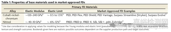 上表中縱坐標從上到下依次為鈷鉻合金,鎳鈦合金,橫坐標分別為Alloy(材料),Elastic Modulus(彈性模量),Elastic Limit(彈性應變極限),以及對應常見的密網(wǎng)支架名稱。