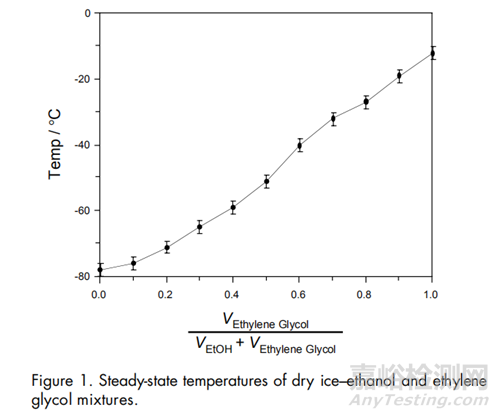 感謝用戶“鮑瑞洋”的建議:上述表格中一些溶劑不好找,而且好多溶劑降到所需溫度后容易結(jié)塊(如乙腈),不能長時間保持相應(yīng)溫度。利用下方文獻中提到的方法,使用不同配比的乙二醇和乙醇干冰浴,可得到從-12℃到-78℃的低溫浴。此方法可以長時間保持溫度,只需要隔一段時間加入少量干冰保持溫度即可。