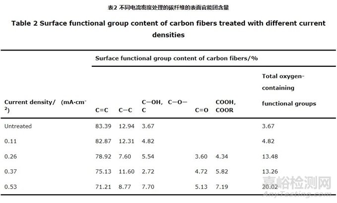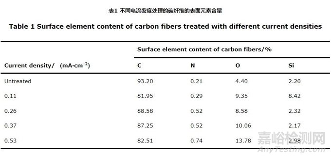 2.1 電流密度對(duì)碳纖維表面物理化學(xué)結(jié)構(gòu)的影響