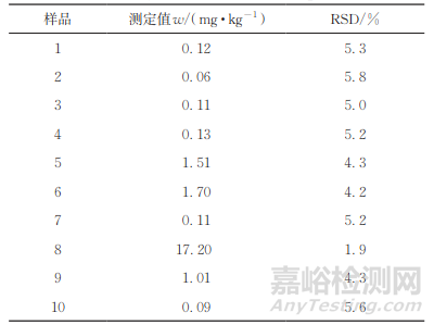 表3 樣品分析結(jié)果(n=6)