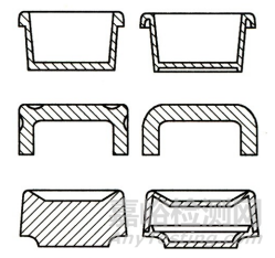 塑料產(chǎn)品的壁厚不僅與產(chǎn)品的強度和剛性有關(guān),還與產(chǎn)品質(zhì)量、大小、尺寸穩(wěn)定性絕緣、隔熱、退出方式、成形方法、成形材料以及產(chǎn)品的成本等有關(guān)。通常,產(chǎn)品應(yīng)具有均勻的壁厚,壁與壁的連接處盡量用圓弧連接,從而避免壁厚的突然劇變。圖11為壁厚均勻化示意圖。