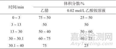乙腈-乙酸銨溶液:取乙腈和0.02 mol/L乙酸銨溶液,按體積比1∶1混勻即得。