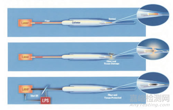 無LPS反饋保護(hù):光纖端面逐漸炭化,并吸收激光能量產(chǎn)生有害的破壞性熱量。