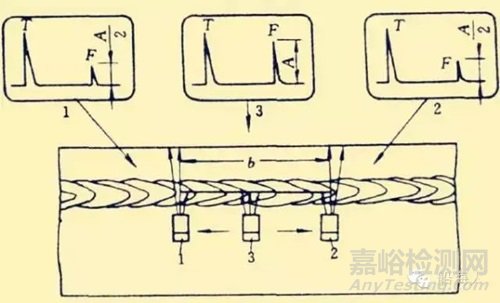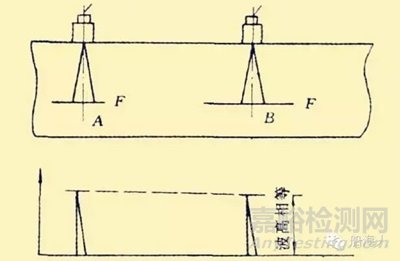 雖然A、B兩缺陷大小不同,但缺陷反射波高度卻相同,這是由于缺陷面積大于聲束面積后,隨著缺陷面積的增大,缺陷反射波不再增高的緣故,因此無(wú)法根據(jù)波高判斷其大小。