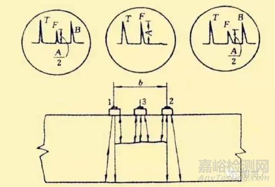 橫波探傷用半波高度法測(cè)定缺陷長(zhǎng)度與之相同,如圖3所示。