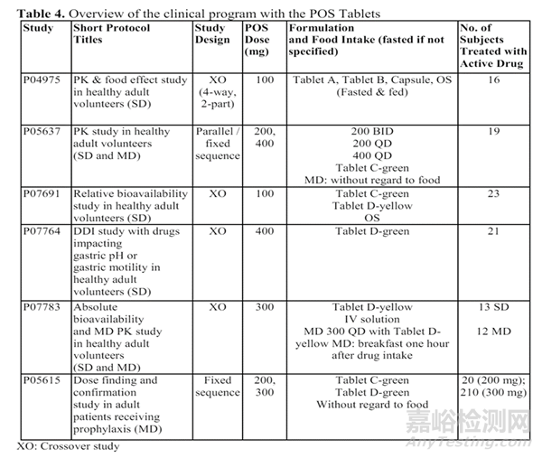 以FDA批準(zhǔn)的泊沙康唑腸溶片Noxafil® Tablets為例,該產(chǎn)品是對其口服混懸液的改良,其臨床研究內(nèi)容如下表所示[8]: