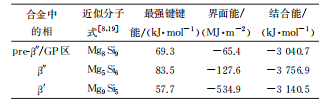 表 2 試驗(yàn)合金 GP區(qū)的最強(qiáng)鍵鍵能及結(jié)合能