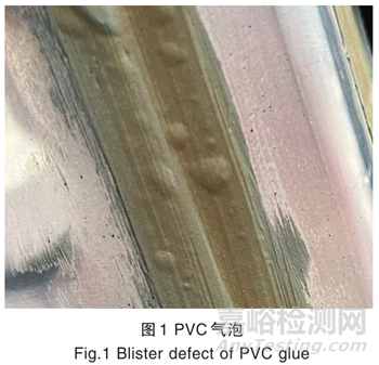 PVC 氣泡(見圖 1)是 PVC 經(jīng)過高溫烘烤后,其內(nèi)部濕氣或空氣揮發(fā)膨脹,致使 PVC 產(chǎn)生鼓包,也就是氣泡(如果氣泡被內(nèi)部氣體頂穿就會形成PVC孔洞),嚴重影響 PVC 的密封防水性能。根據(jù)長期現(xiàn)場管控經(jīng)驗,得出如下原因及控制措施。