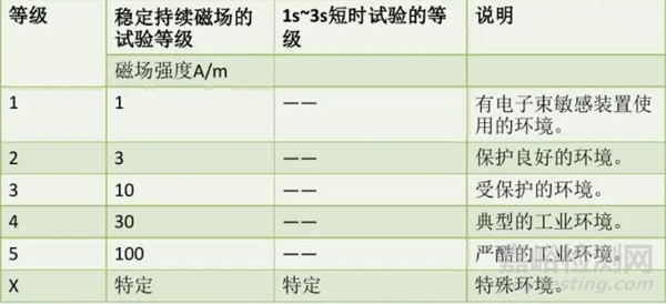 工頻磁場(chǎng)抗干擾度實(shí)驗(yàn)等級(jí):