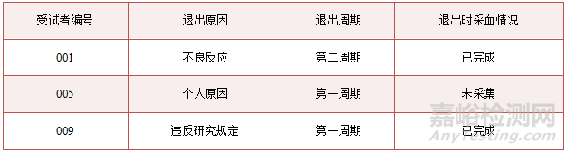 入組過程中,所有受試者均簽署了知情同意書,并接受了研究人員的詳細解釋和指導(dǎo)。研究期間,大部分受試者均按照研究方案完成了各項試驗任務(wù),包括給藥、血樣采集和隨訪等。然而,也有少數(shù)受試者因各種原因退出了研究。具體情況如下表所示: