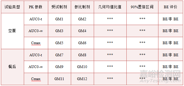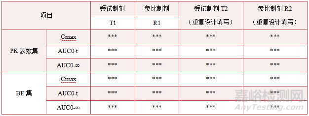 說明生物等效性統(tǒng)計分析所使用的軟件及版本號。說明生物等效性評價方法(ABE或RSABE方法)及預(yù)設(shè)等效性標準。以表格形式分別列出空腹和餐后試驗主要PK參數(shù)(AUC0-t、AUC0-∞、Cmax等)的受試制劑和參比制劑幾何均值、受試制劑/參比制劑幾何均值比值及其90%置信區(qū)間或相應(yīng)BE評價指標結(jié)果等信息。同時列出方差分析結(jié)果、Tmax檢驗結(jié)果。如有受試者數(shù)據(jù)剔除或缺失,應(yīng)充分評估對生物等效性結(jié)論穩(wěn)健性的影響。