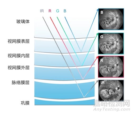 值得一提的是,這款設(shè)備采用了四波長激光(R/G/B/IR)分層掃描成像技術(shù),通過不同波長激光的掃描深度差異,能夠完整覆蓋眼底視網(wǎng)膜10層次組織結(jié)構(gòu)診斷區(qū)域,為醫(yī)生提供更廣、更全面、更深入的眼底臨床信息。