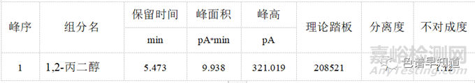 因此,使用中科安泰該款色譜柱AE.PEG-20M(30m*0.32mm*0.33μm) 能夠?qū)?,2-丙二醇化合物達(dá)到很好的分離效果,從而能夠準(zhǔn)確的進(jìn)行定性和定量分析。